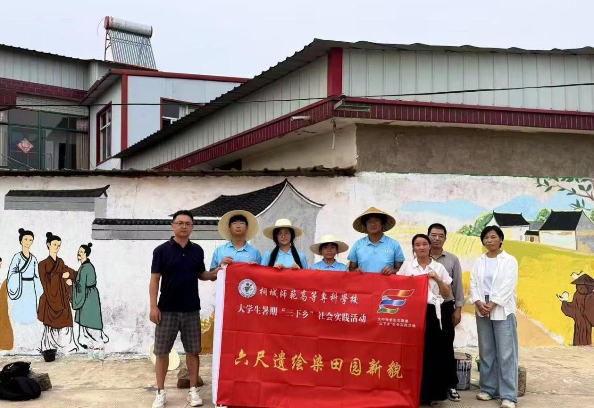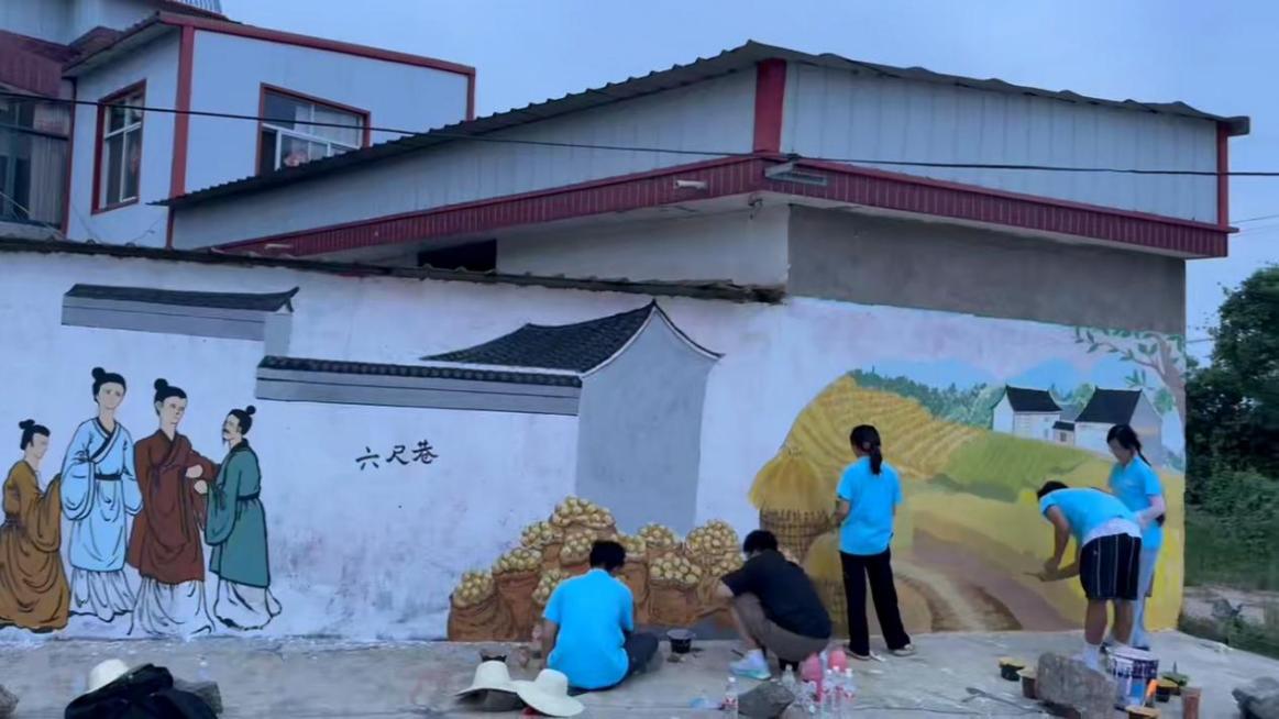 項目命名“六尺遺繪染田園風光”,暗含桐城“六尺巷”典故。但在實施初期,現實的落差令人焦慮:村裏沒有標誌性建築,兒童不足十人,農戶多閉門勞作。隊長楊朔在日記中寫道“牆繪會不會成為懸浮的裝飾?”村民們肯定的聲音為團隊打上了一針強心劑——當學生在村外牆繪製《六尺巷》線稿時,路過村民紛紛駐足:“六尺巷文化就該刻進每個桐城人骨頭裏!