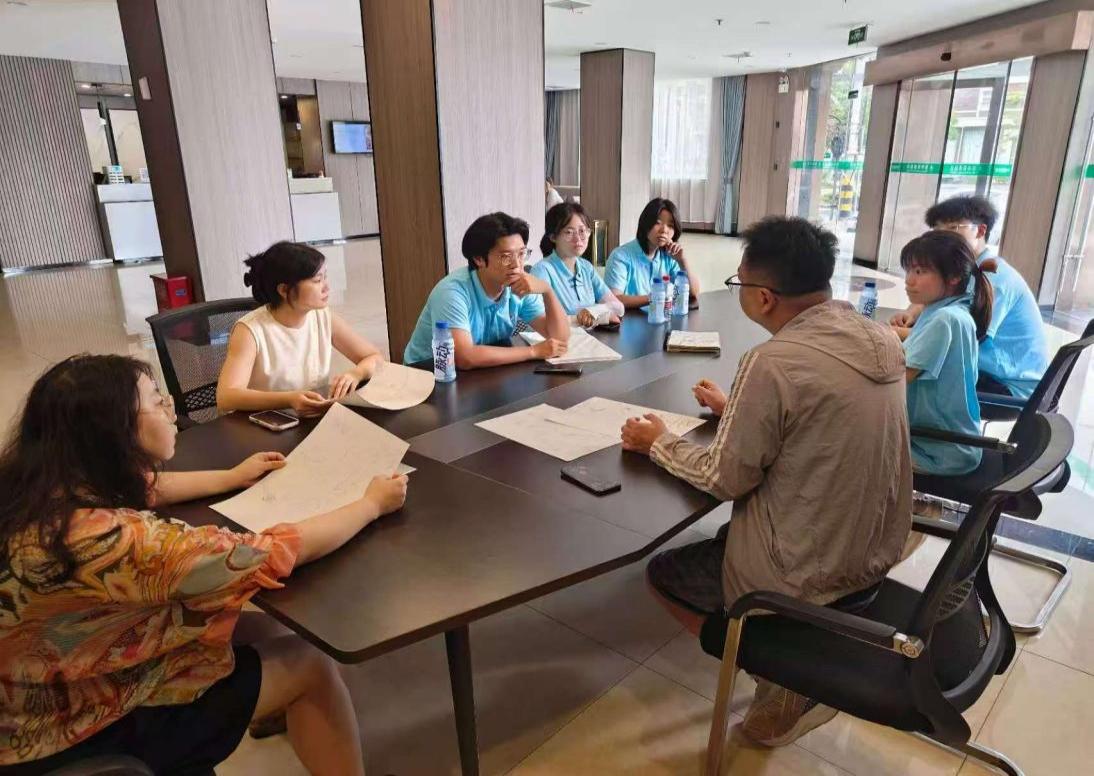 正午的合河村,熱浪翻湧。村委會休息室內,隊員們趴在會議桌上短暫休整,被汗水浸透的衣衫緊貼著椅背,沒有抱怨,隻有擰緊水瓶的窸窣聲——快些修整,下午還有半麵牆等著上色。這群平均年齡不到二十歲的娃娃兵已在高溫下炙烤了數日,早上六點爬起,頂著晨曦踏入鄉野,七點收工,攜著漫天星光踏出村莊。“很心疼,但更多的,是為他們驕傲”!指導老師王辰銘在和村支書的交談中發自肺腑地感歎。