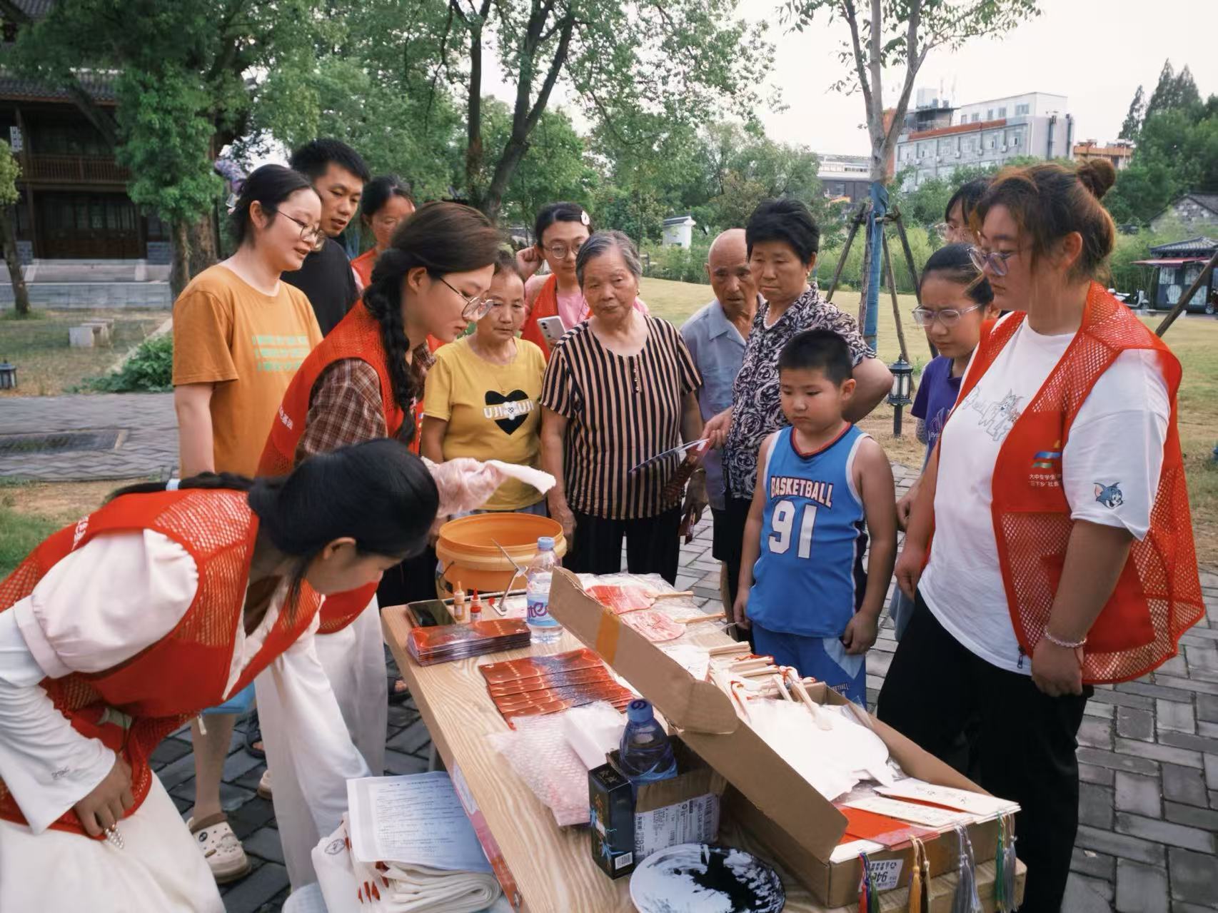 成員們充分發揮創意專長與審美巧思,將桐城大地上的紅色印記——從中共孔城支部的星火微光,到歐家嶺農民武裝的抗爭呐喊,從棋盤嶺伏擊戰的英勇身姿,到桐懷潛黨代會的曆史抉擇——提煉為具象的設計元素,融入到一件件文創產品中。展台上,印著革命遺址剪影的鑰匙扣小巧精致,刻有“紅色桐城”字樣與曆史事件的書簽古樸典雅,而最引人注目的當屬漆扇體驗項目:團隊成員們準備了素白的漆扇坯與特製顏料,手把手教市民遊客在扇麵上繪製革命場景或紅色標語,讓大家在親手創作中觸摸曆史、感受情懷。這些文創產品既有對革命曆史的致敬,又不失生活氣息,成為連接紅色記憶與當下生活的紐帶。