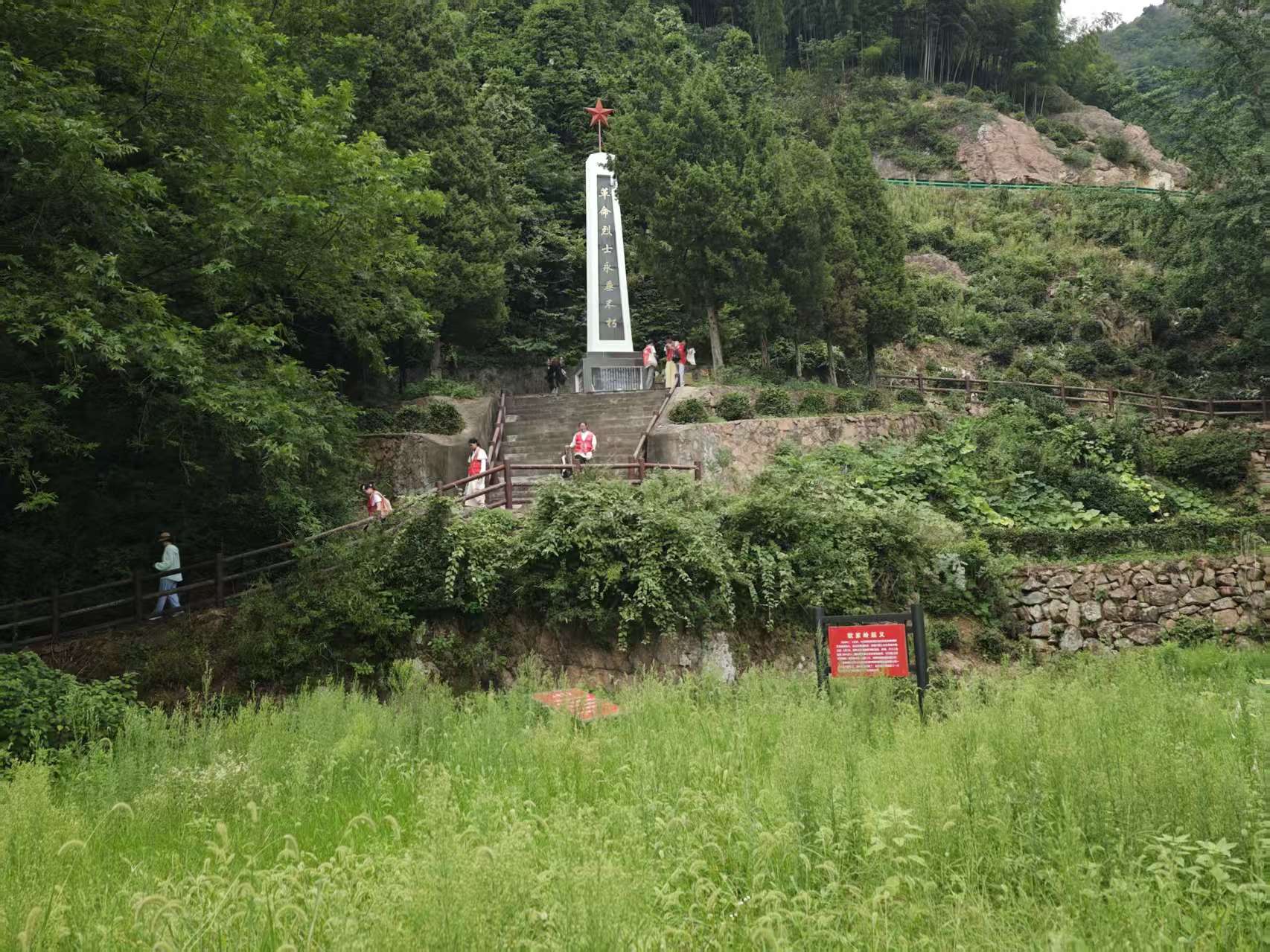 7月30日,團隊駐足於棋盤嶺抗日伏擊戰遺址。1938年,新四軍第四支隊在這裏成功伏擊了日軍運輸隊,擊毀大量日軍車輛,繳獲大批軍用物資,沉重打擊了日軍的囂張氣焰,極大地鼓舞了皖中地區軍民的抗日鬥誌。在遺址旁,通過詳實的史料介紹和場景還原,團隊成員們詳細了解了這場伏擊戰的戰略部署、戰鬥過程和重要意義。大家仿佛置身於當年的戰鬥現場,感受到了新四軍將士們在敵強我弱的情況下,憑借靈活機動的戰術和英勇無畏的精神,以少勝多、痛擊日寇的豪邁氣概,深刻領悟到了“天下興亡、匹夫有責”的愛國情懷和不畏強暴、敢於鬥爭的民族氣節。