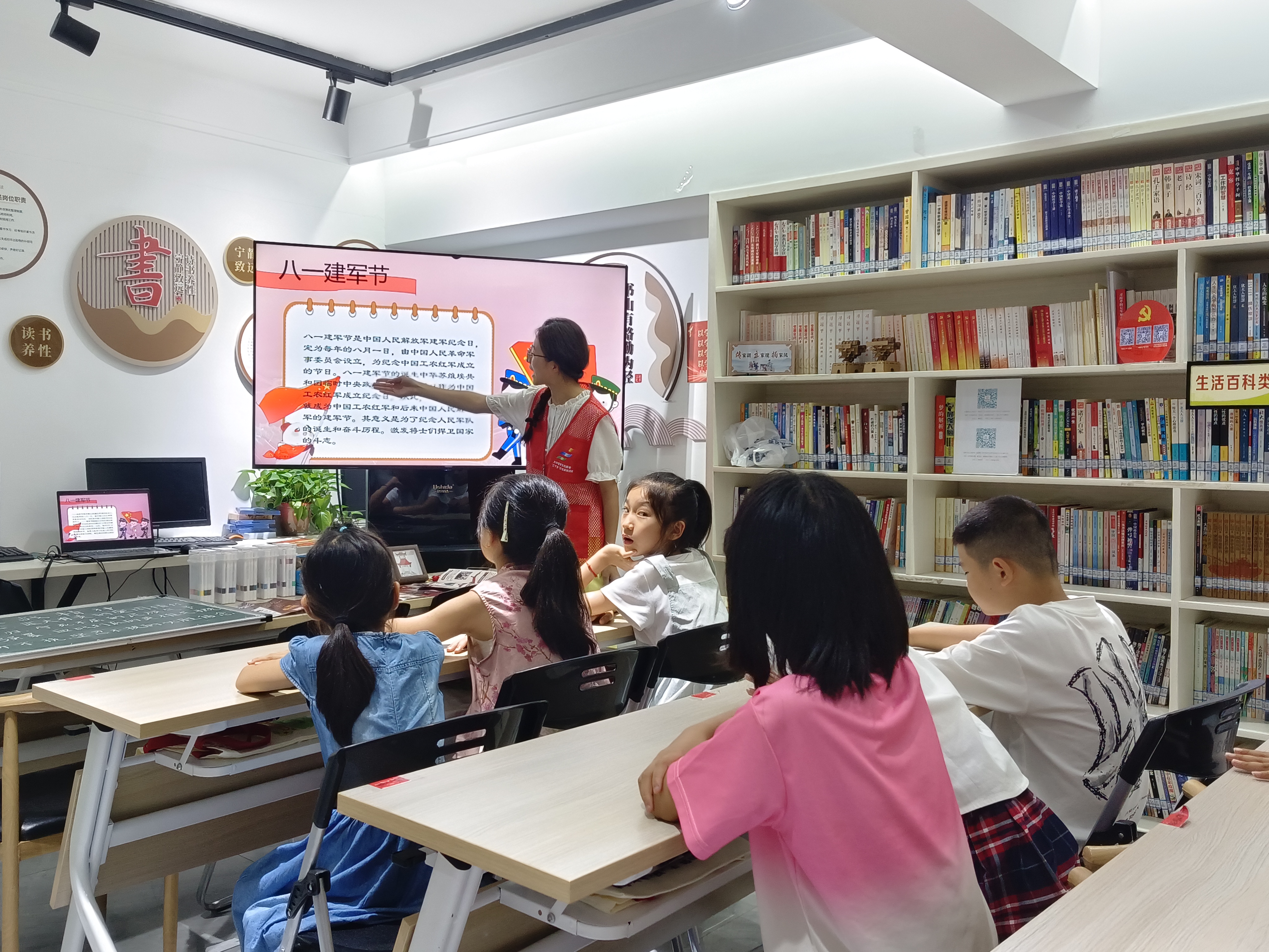 活動現場早已被精心布置得暖意融融:團隊展示了在紅色地標拍攝的照片——中共孔城支部遺址的青磚灰瓦、歐家嶺的陡峭山路、棋盤嶺伏擊戰的曆史場景複原圖,一張張圖片如同打開曆史的鑰匙,瞬間將孩子們的注意力吸引過來。成員們把幾日來在各個遺址聆聽的故事細細打磨,化作孩子們聽得懂、記得住的生動講述:“你們知道嗎?在咱們桐城,很早就有一群勇敢的人,像黑暗裏的星星一樣,悄悄點燃了革命的火種……”他們用比喻拉近曆史與現實的距離,講孔城支部的先輩如何在白色恐怖下秘密開會,講歐家嶺的農民叔叔們如何拿著鋤頭鐮刀保衛家園,講新四軍叔叔在棋盤嶺如何用智慧打跑日本侵略者。孩子們瞪著好奇的眼睛,時而屏息凝神,時而忍不住舉手追問:“他們不怕嗎?”“後來勝利了嗎?”每一個問題裏,都藏著對英雄的崇拜與對曆史的向往。