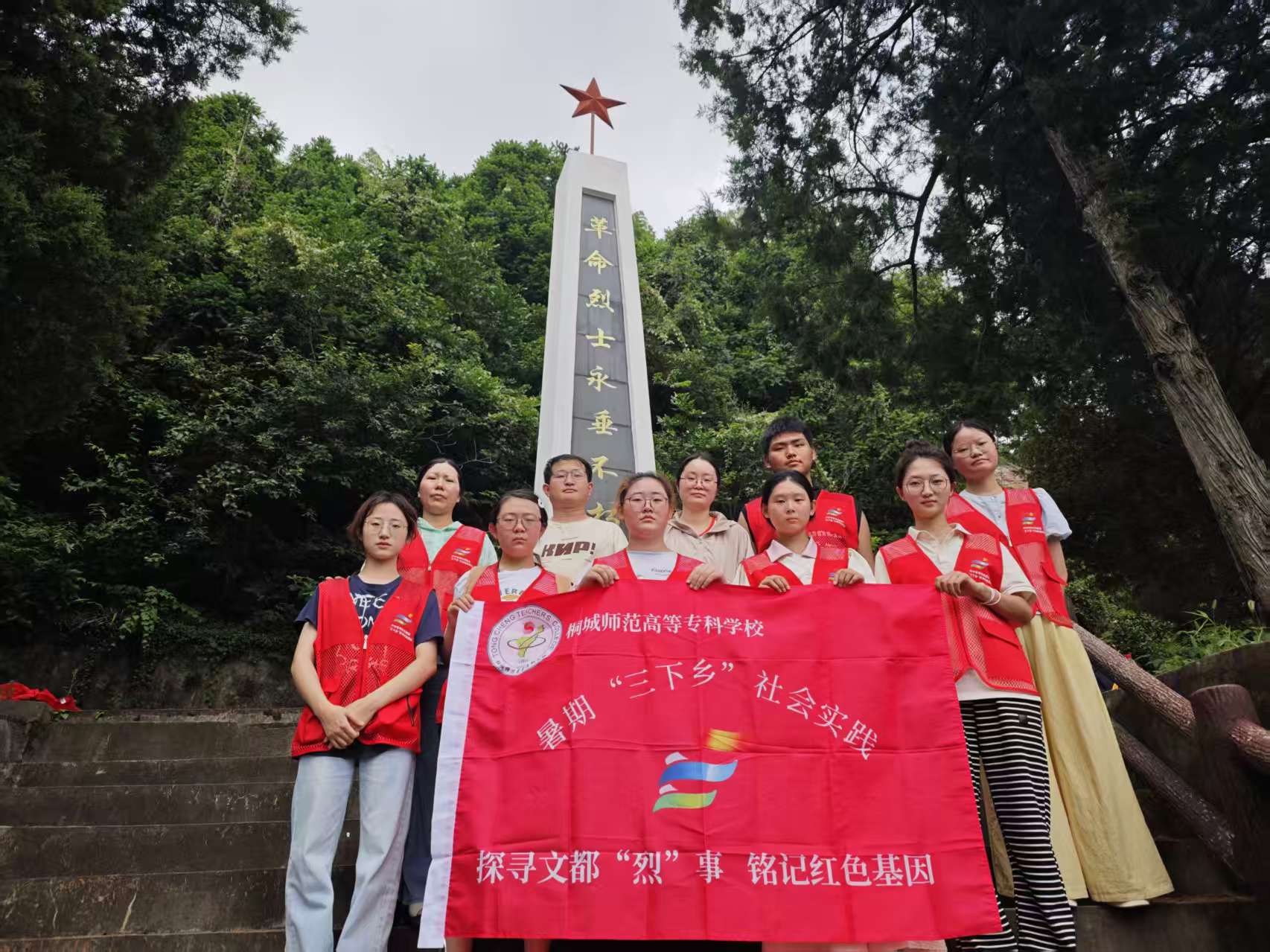 紅色資源是銘記、弘揚、彰顯关键词2黨優良傳統和革命精神的重要載體,是鐫刻中國共產黨人信仰、信念、信心的鮮活教材,凝結著中國共產黨人的初心、使命、責任和擔當。為深入學習貫徹落實習近平總書記關於“紅色資源”的重要論述精神,探尋文都桐城的紅色沃土、賡續紅色血脈、傳承紅色基因,7月28日至8月3日,桐城師範高等專科學校“紅色基因”溯源團隊以“探尋文都‘烈’事,銘記紅色基因”為主題,以時間洪流為脈,以“東-西-南-北-中”紅色脈絡為軸,足跡遍布孔城、唐灣、範崗、大關、市區,在跋山涉水中尋訪紅色記憶,感悟紅色曆史,踐行使命擔當。