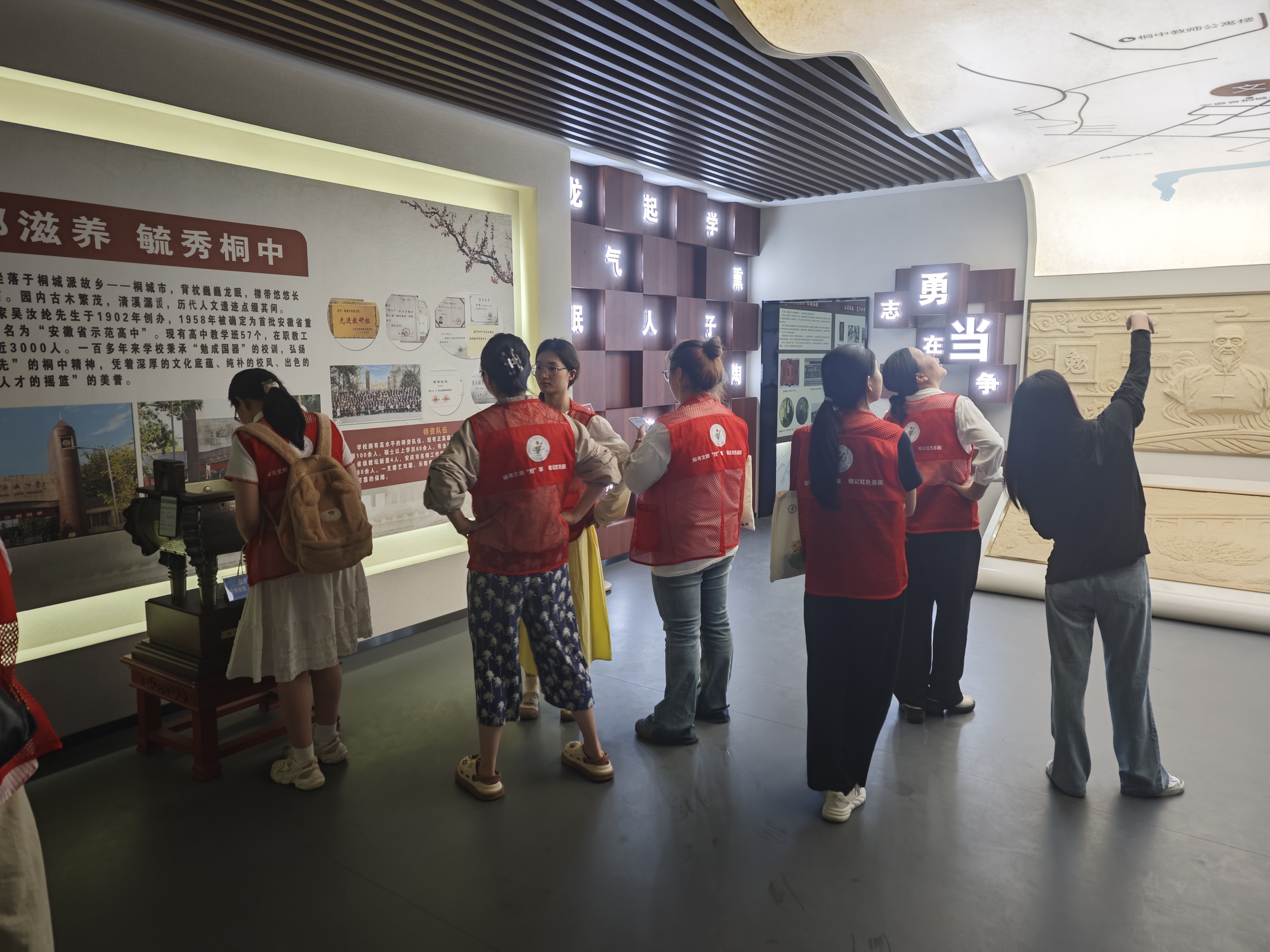 8月2日,學習之旅的最後一站來到桐城中學。作為一所具有深厚革命傳統的教育場所,桐城中學的每一處建築、每一段曆史都散發著紅色的光芒。漫步在校園裏,古老的銅鍾靜靜矗立,仿佛在訴說著百年校史中與革命緊密相連的記憶。斑駁的磚石上,留存著歲月的痕跡,也見證了一代代桐中學子投身革命、報效祖國的赤子之心。在講解員的深情講述中,團隊成員們了解到桐城中學在不同曆史時期為革命事業培養人才、貢獻力量的故事,感受到了這裏濃厚的革命氛圍和人文底蘊。大家紛紛表示,校園裏的每一處斑駁磚石、每一段深沉講述,都是一本生動的曆史教科書,讓人們在潛移默化中受到紅色精神的滋養和感召。