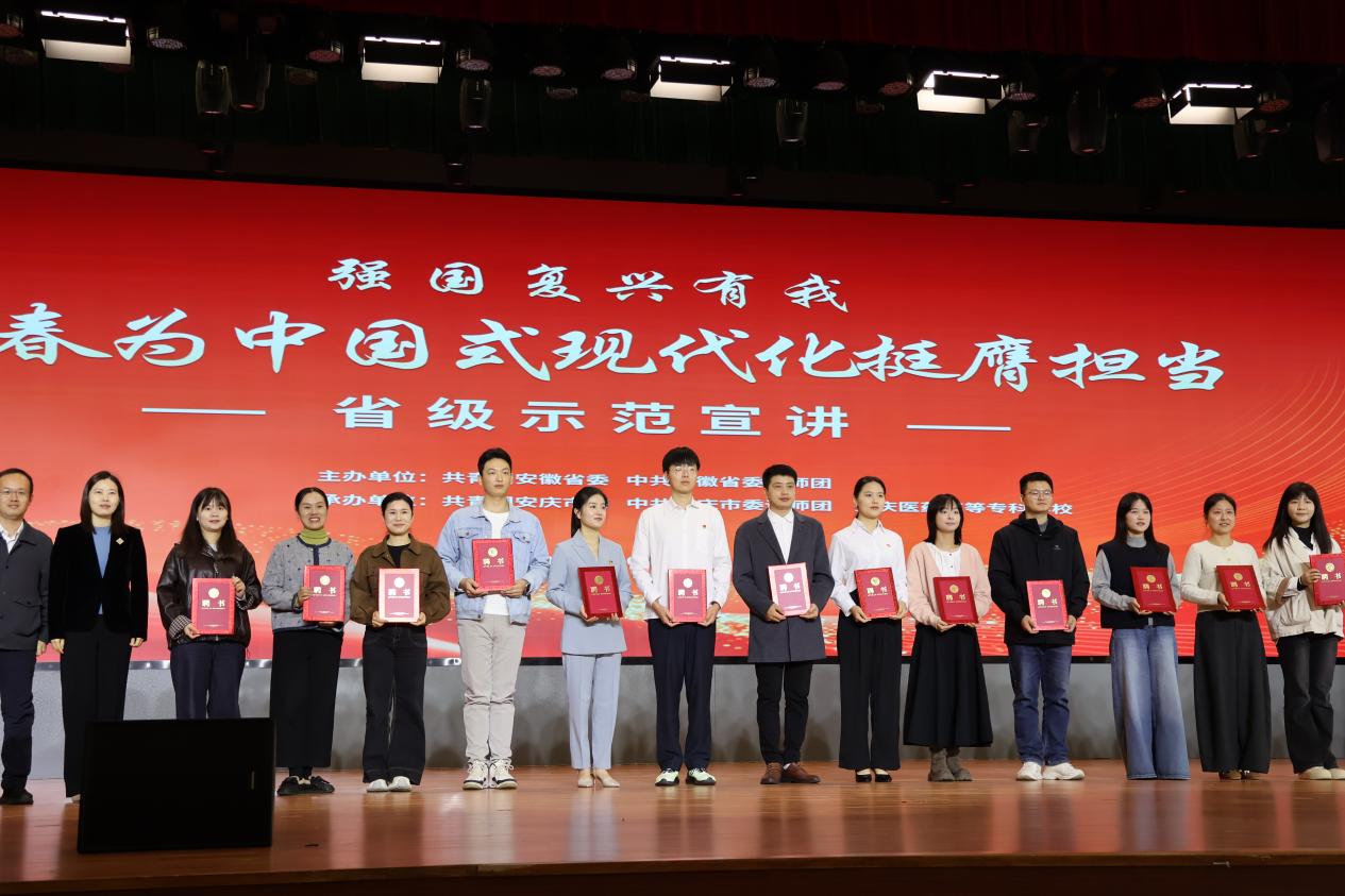 為深入學習貫徹習近平新時代中國特色社會主義思想,激勵廣大青年在中國式現代化建設中挺膺擔當、貢獻青春力量,10月27日上午9:00,由團安徽省委、省委講師團主辦,團安慶市委、安慶醫藥高等專科學校承辦的“強國複興有我,青春為中國式現代化挺膺擔當”省級示範宣講活動,在安慶醫藥高等專科學校多功能報告廳隆重舉行。來自各領域的青年代表齊聚一堂,共話青春使命,我校教師吳耀虹作為安慶市青年講師團成員,受邀參加活動並作專題宣講。