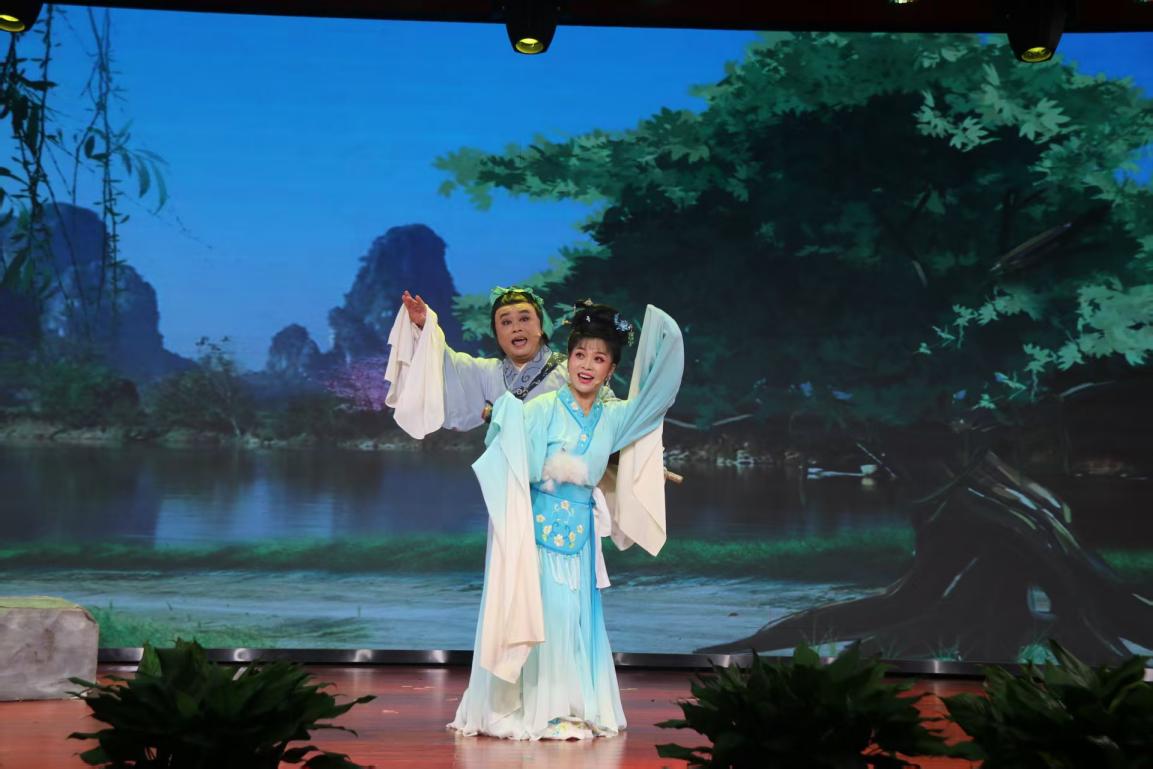 演出在悠揚婉轉的黃梅戲旋律中拉開帷幕。舞台上,演員們以精湛的演技、優美的唱腔和精美的服飾,生動演繹了“董永與七仙女”這段家喻戶曉的愛情傳說。演員們細膩的身段表演、富有感染力的對白,將人物性格與劇情衝突展現得淋漓盡致現場觀眾仿佛置身於那個充滿神話色彩的世界。