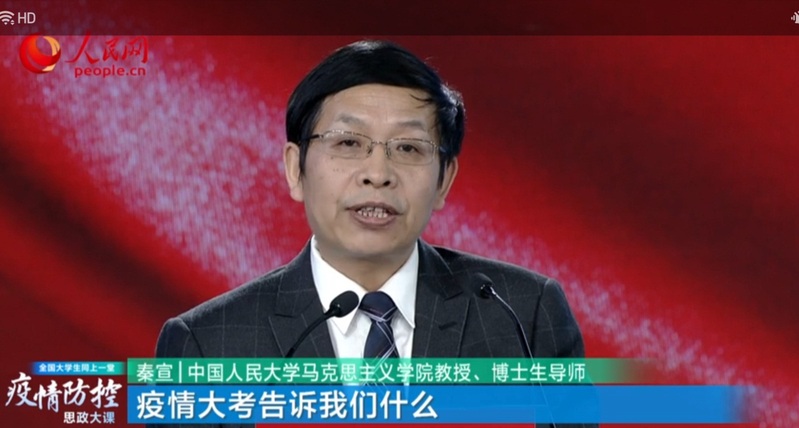 為將高校思政課教學優勢轉化為防疫鬥爭的強大力量,引導廣大學生增強“四個意識”、堅定“四個自信”、做到“兩個維護”。教育部社會科學司、人民網於2020年3月9日14:30至16:00聯合舉辦了“全國大學生同上一堂疫情防控思政大課”。本次特邀艾四林、秦宣、王炳林、馮秀軍四位教授雲端授課。我校高度重視此次授課、精心部署,妥當安排,全體思政教師和學生準時齊聚雲端同看疫情防控思政大課。