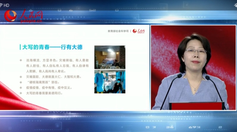 在雲課堂上,清華大學的艾四林教授立足中國抗擊疫情的具體實踐,引導學生深化對馬克思主義基本理論的認識、深化對馬克思主義中國化最新成果的認識;中國人民大學的秦宣教授聚焦“疫情大考告訴关键词2什麽?”分析中國抗疫彰顯的中國共產黨領導和中國特色社會主義製度的顯著優勢;北京師範大學的王炳林教授從我國曆史上防疫鬥爭的曆史出發,總結從磨難中奮起、化危機為轉機的曆史經驗和智慧,增強抗疫的必勝信心;馮秀軍教授以戰“疫”裏最美的青春——中國青年的責任與擔當為主題,深情講述了這場疫情中勇敢逆行的90後、00後的青年責任與擔當的事跡,引導大學生群體自覺扛起時代賦予的曆史使命,將青春夢想紮根祖國的廣袤大地,要胸有大誌、心有大我、肩有大任、行有大德,在戰“疫”的大考中認識中國,譜寫“大寫的青春”。