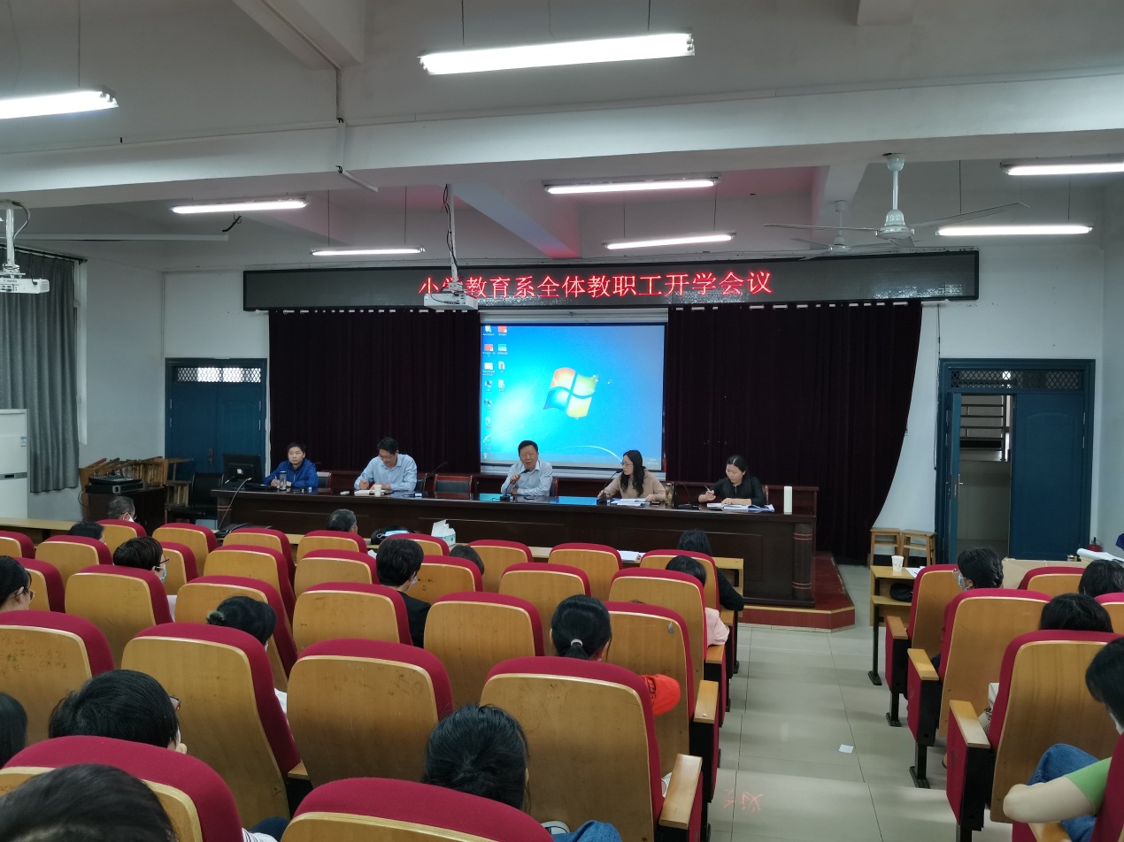 5月10日下午,小學教育係在以智樓一樓報告廳召開了小學教育係全體教職工開學會議,校黨委委員、副校長吳登明,校黨委委員王宏偉,作為疫情防控期間聯係係部校領導出席會議。小學教育係主任程愛蘭主持會議,小學教育係全體教職工參加會議。