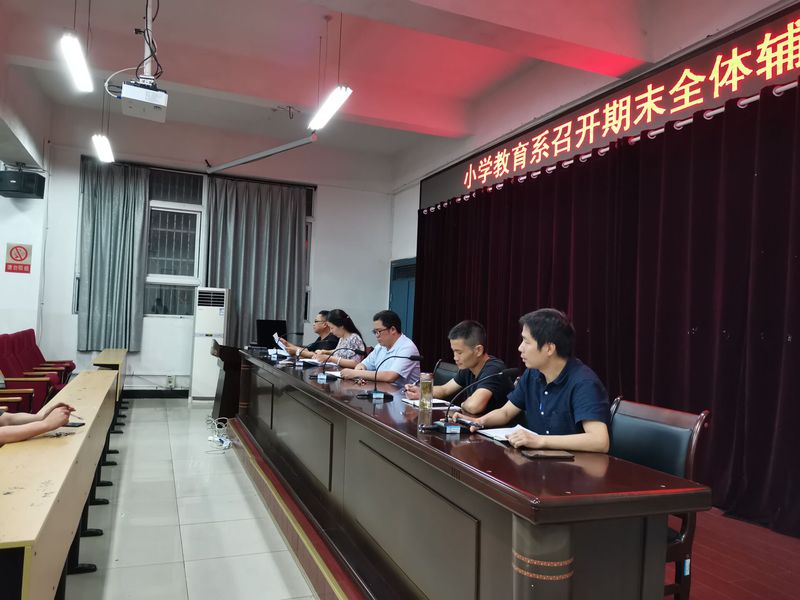 6月20日晚七點半,小學教育係在以智樓一樓報告廳召開了期末全體輔導員工作會議,會議由係分管學生工作副主任雷小麗主持,係主要負責人方皓文、係分管教學工作副主任陶家韻、係專職副書記殷海紅出席了此次會議。