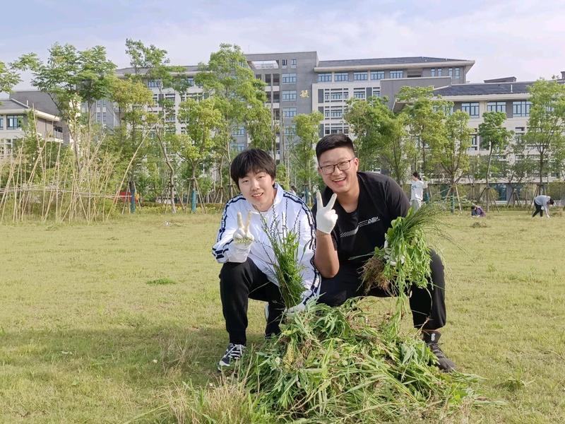 本次活動一共有五個班級參與。參加活動的同學們以高昂的情緒和飽滿的熱情積極投入到本次活動。麵對遍地的野草,同學們都戴上了手套,幹勁十足的投入到除草活動當中。每位同學都在揮灑在汗水,一粒粒汗水形成一道道美麗的彩虹,校園內映射著他們可愛的身影,形成靚麗的風景線。