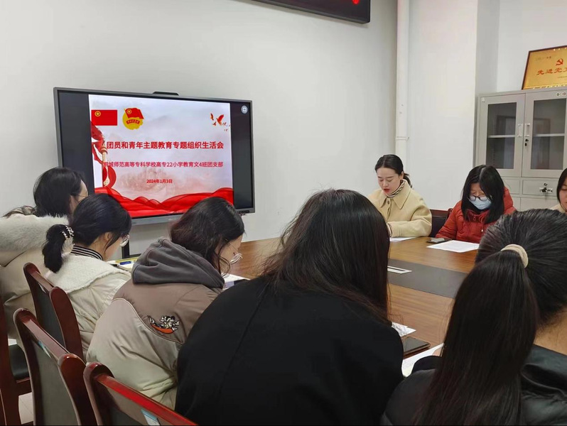 2024年1月3日下午,小學教育係高專22文4班團支部在毓秀樓二樓黨員活動室召開團員和青年主題教育專題組織生活會。我係團總支書記程蓉蓉、輔導員趙玲以及高專22文4班全體團員參會,會議由小學教育係高專22文4班團支部書記關梓文主持。