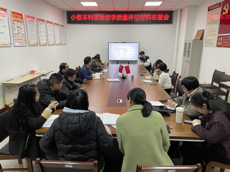 2024年3月27日下午,小學教育係在黨員活動室召開了小學教育係本科教育教學質量評估材料布置會議。係部黨總支書記陳濤、係部負責人方皓文出席會議,教學和學管副主任、專業帶頭人、教研室主任、 輔導員、12位小教係課程的授課老師均參會。