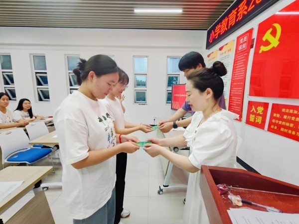 2024年7月3日晚,在一站式學生社區舉行了小學教育係2024年新發展團員入團儀式。 參加今天儀式的有小學教育係2024年新發展團員、優秀團員代表等,同時也邀請了黨組織黨員代表郭曉瑋老師。儀式由小學教育係團總支書記程蓉蓉主持。