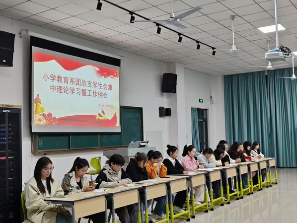2024年10月24日,桐城師專小學教育係團總支學生會集中理論學習暨工作例會在以智樓報告廳進行。