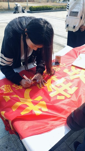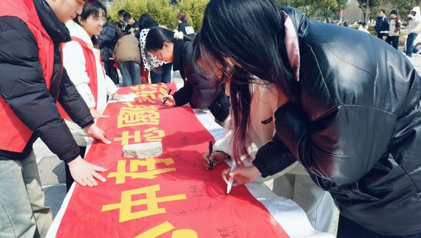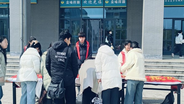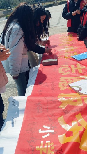 為了點燃同學們心中雷鋒精神的火焰,激發大家對雷鋒精神的尊崇與傳承。我係團總支於3月6日中午在校食堂門口舉辦了以““雷鋒精神心中存 誌願服務我先行””為主題的橫幅簽字活動。 中午時分,食堂門口熙熙攘攘,一場橫幅簽字活動在此熱烈開展。誌願者們身穿服裝,熱情地向過往同學介紹活動的內容。巨型橫幅整齊的鋪在提前搬來的桌子上,“雷鋒精神心中存 誌願服務我先行”的字樣格外醒目。