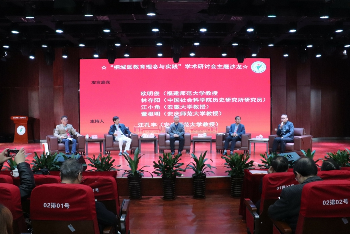 開幕式結束後舉辦了主題沙龍,邀請林存陽研究員、歐明俊教授、江小角教授、董根明教授圍繞“桐城派教育理念與實踐”主題作了專題發言。主題沙龍由安慶師範大學人文學院院長、安徽省桐城派研究會副會長汪孔豐教授主持。