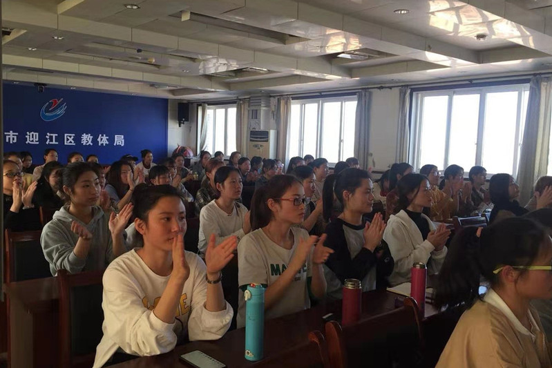 李卓代表迎江區教體局致歡迎詞,張朝霞代表大觀區教體局作表態講話,迎江區墨子巷幼兒園沿江分園園長羅敏代表各實習幼兒園作表態發言。潮源源代表桐城師專學前教育專業實習生作鄭重承諾。