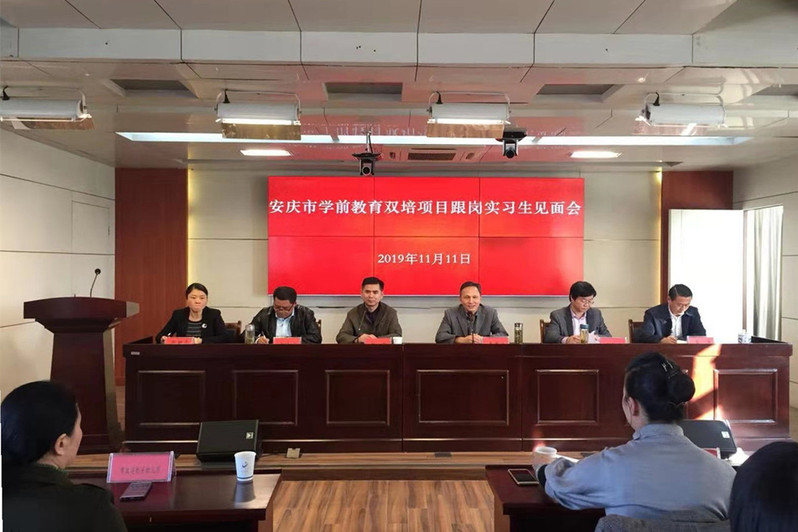 11月11日,安慶市學前教育雙培項目跟崗實習生見麵會在安慶市迎江區教體局舉行。安慶市教體局基教科科長方敏、迎江區教體局副局長李卓、大觀區教體局副局長張朝霞,以及桐城師專教務處處長黃洪沫、學前教育係主任程躍文、副主任方皓文出席會議,迎江區、大觀區承接學前教育雙培項目的各幼兒園園長和桐城師專60名跟崗實習生參加會議。會議由安慶市教體局基教科科長方敏主持。