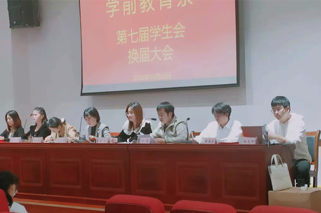 10月25日,我係第七屆學生會換屆大會暨表彰大會在其昶樓報告廳舉行。係黨支部副書記、學管副主任金丹萍、係學管幹事王辰銘老師、係專職輔導員許嬌老師以及全體學生會成員參加本次會議,大會由係團總支書記方健老師主持。