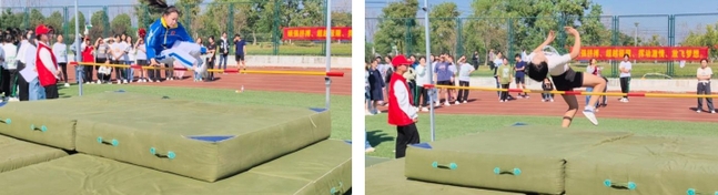 追風趕月莫停留,平蕪盡處是春山。在田賽賽場上,我係同學們同樣展現出了他們出色的技巧和靈活的身體。在三級跳遠比賽中,學前教育係張洋同學以12.70m的成績打破我校記錄,奪得金牌,再創新高!同時在鉛球賽場上,學前教育係的吳向星同學也以14.3m的優異成績打破我校記錄,奪得金牌!他們奮力向前,向觀眾展示出了他們對比賽的熱愛和決心。