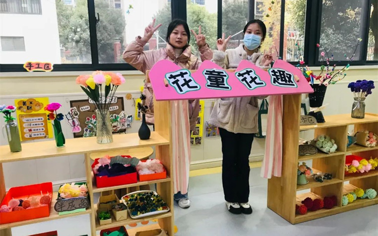 下圖為實習老師們在班級老師的指導下,利用自己的專業為孩子們創設的特色區角和主題環境。