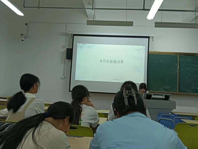 在分享過程中,三位優秀畢業生不僅用生動的語言和實例闡述了專升本的重要性,還結合自己的親身經曆,向同學們傳授了備考技巧和方法。她們鼓勵大家要珍惜在校時光,努力學習專業知識,為將來的專升本考試打下堅實的基礎。