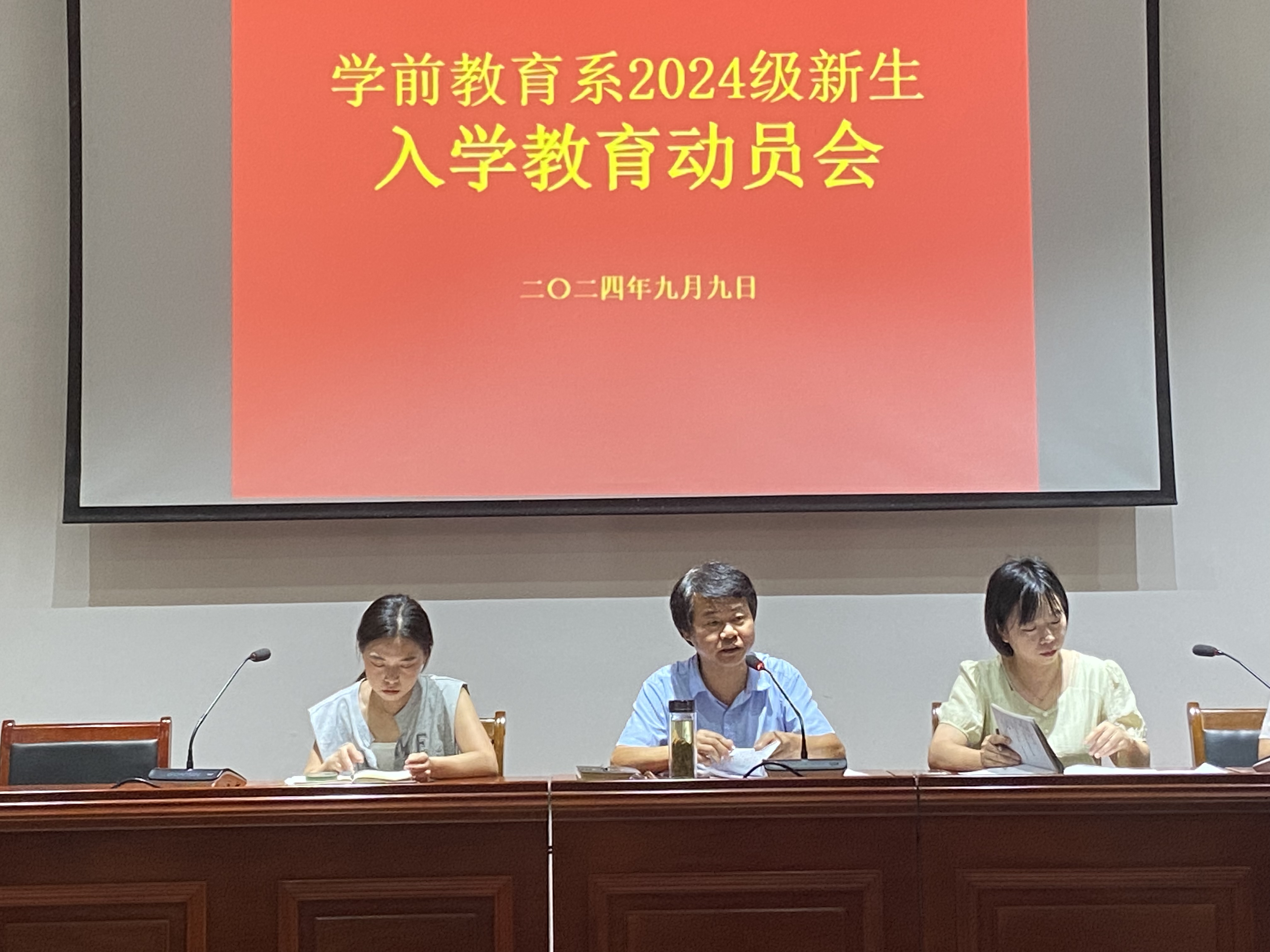 2024年9月9日上午,學前教育係在其昶樓報告廳舉行2024級新生見麵會暨入學教育動員大會,學前教育係副主任金丹萍、團總支書記方健、學管幹事王辰銘以及新生輔導員出席,會議由學前教育係黨總支書記程躍文主持。