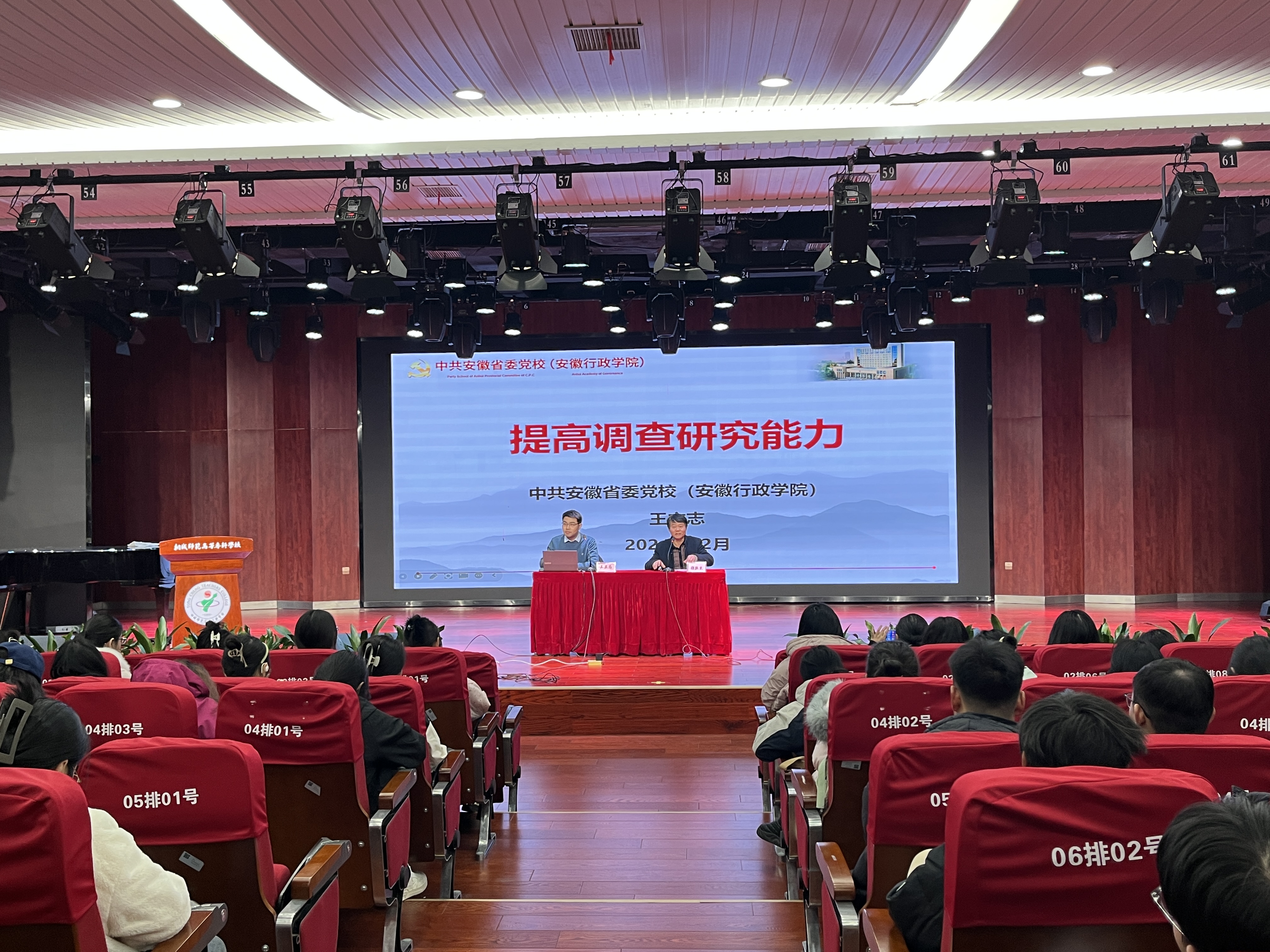 為深入貫徹落實關於高校教師黨支部書記“雙帶頭人”培育工作的部署要求,創新落實立德樹人根本任務,12月16日下午,學前教育係教師二支部“強國行”專項行動團隊邀請安徽省委黨校王立誌博士在音樂廳為我校師生做了一場題為“提高調查研究能力”的專題講座。校黨委委員、紀委書記汪誌耿出席講座,學前教育係教師二支部全體教師、本科班學生專科班學生代表參加了講座。講座由學前教育係黨總支書記程躍文主持。