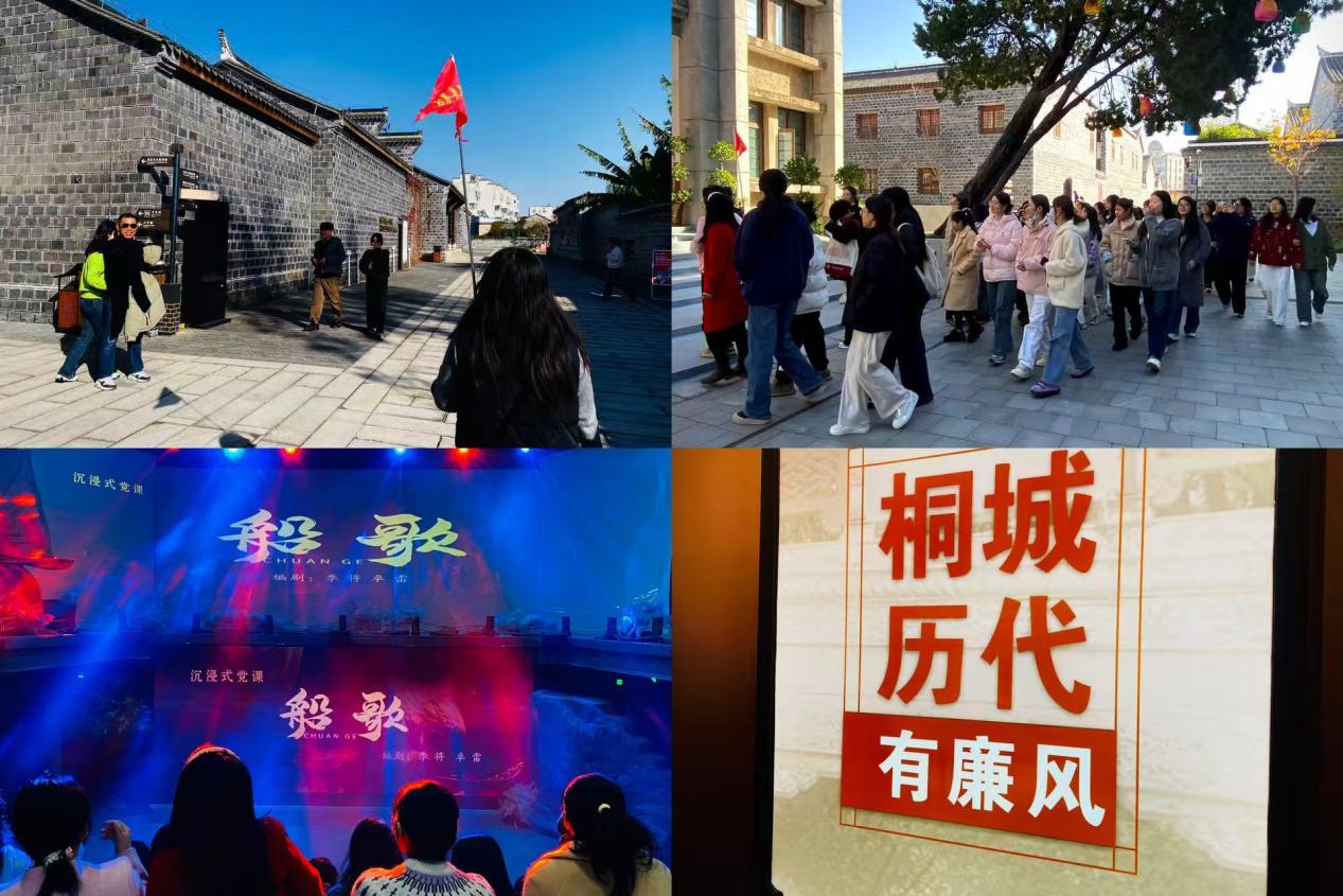 活動伊始,全體黨團員集中觀看沉浸式紅色舞台劇《船歌》。劇中以生動鮮活的情節詮釋了“開天辟地、敢為人先,堅定理想、百折不撓,立黨為公、忠誠為民”的紅船精神核心要義隨後,同學們前往六尺巷廉潔文化陳列館開展學習在講解員的引導下了解“千裏家書隻為牆,讓他三尺又何妨”的經典典故,通過館內的史料文獻係統學習六尺巷文化中蘊含的禮讓包容、廉潔自律的優良傳統。