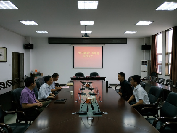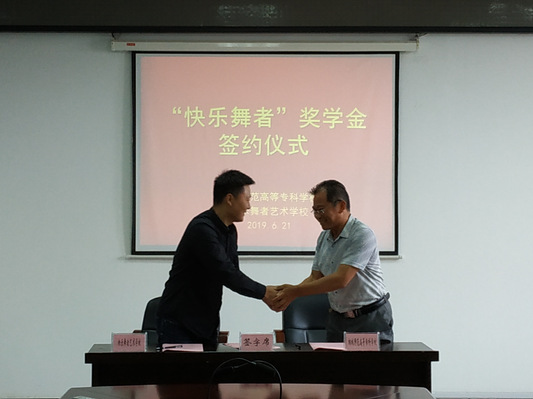 6月21日上午,“快樂舞者”獎學金簽約儀式在圖書館五樓會議室舉行。快樂舞者藝術學校校長夏華鬆、學校教務處處長黃洪末、藝術與設計係書記高先軍和學生處副處長周琳參加了簽約儀式。