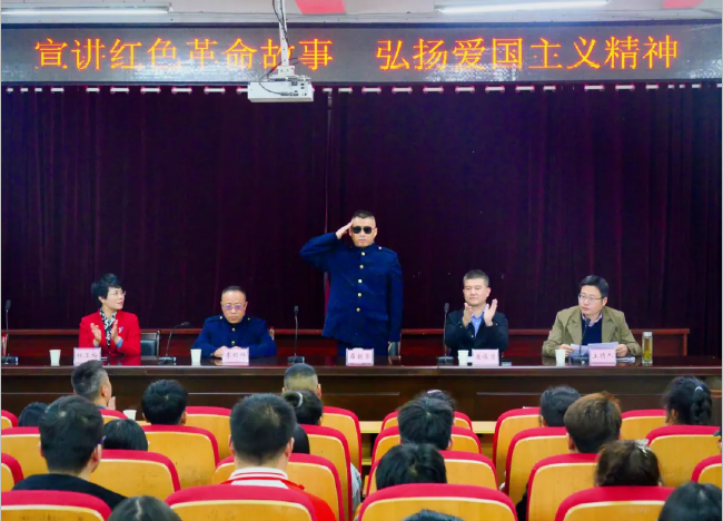 為貫徹落實習近平總書記重要講話精神,大力弘揚愛國主義精神和革命英雄主義精神,厚植愛國主義情懷,營造崇尚英雄、學習英雄、關愛英雄的濃厚氛圍,激發當代青少年熱愛祖國的自覺性和努力學習的主動性。11月4日,省榮康醫院榮軍休養員赴我校宣講紅色革命故事活動在我校以智樓一樓報告廳舉行。老兵李明輝、薛朝榮,省榮康醫院黨委委員、副院長崔俊崗,學校副校長程玉梅,商貿與電子信息係師生代表近140人參加活動,活動由學生處副處長王斌主持。