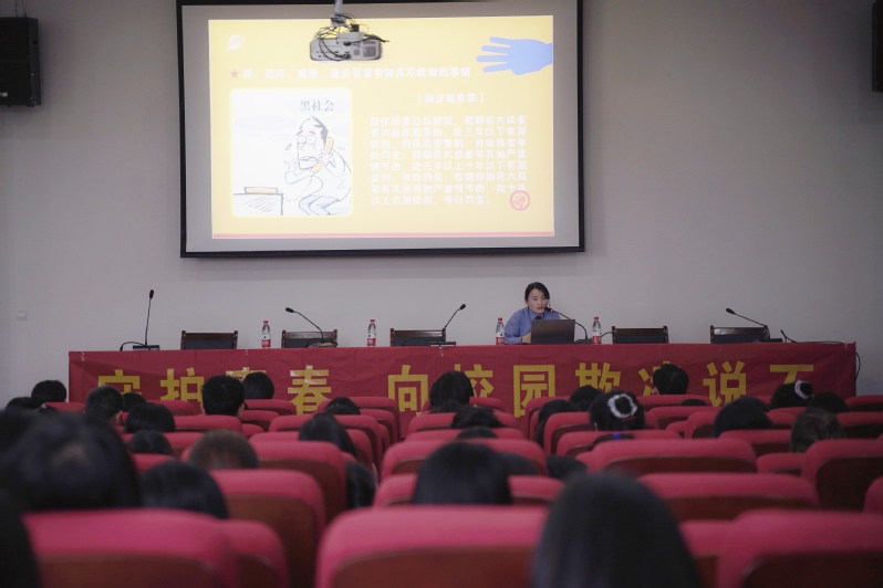講座中,姚珊結合近期周邊發生的真實案例,從校園欺淩的界定、校園欺淩的表現、校園欺淩的現狀、校園欺淩的法律問題以及校園欺淩的應對措施等多方麵進行了詳細的闡述,指導學生在麵對校園欺淩事件時,要防範在先、警惕在前,警於思,合於規、慎於行。講座過程中,姚珊與同學們交流互動頻繁,現場氣氛活躍。