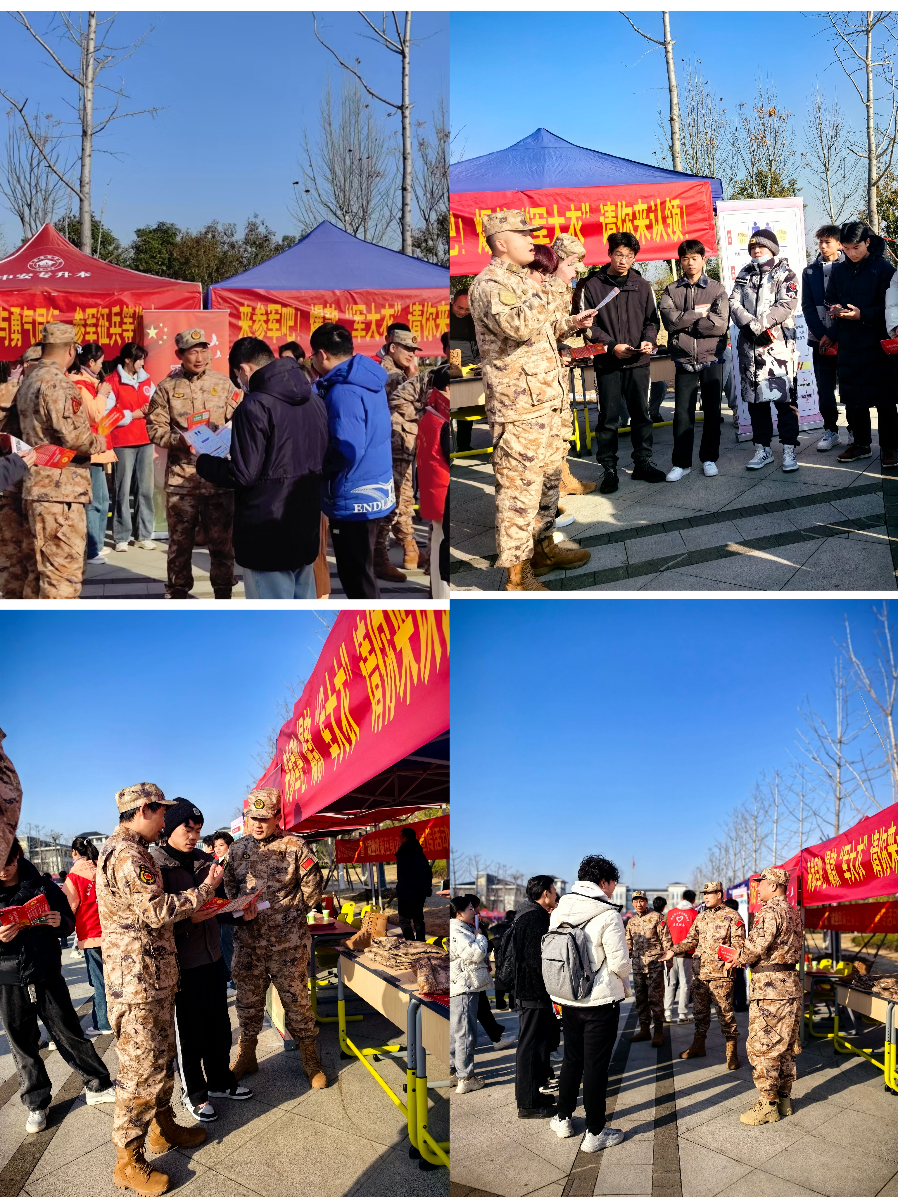 為貫徹落實習近平強軍思想,加強大學生征兵宣講力度,提高征兵政策宣講覆蓋麵,進一步做好2024年征兵工作,助力畢業生更高質量、更加充分就業。12月24日,征兵宣傳走進我校畢業生雙選會,桐城市人武部協同學生處開展宣傳谘詢活動,通過征兵政策宣講進一步激發學生參軍入伍熱情,鼓勵畢業生積極報名投身國防建設。