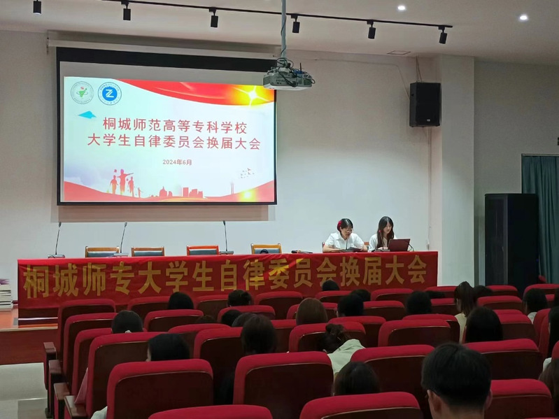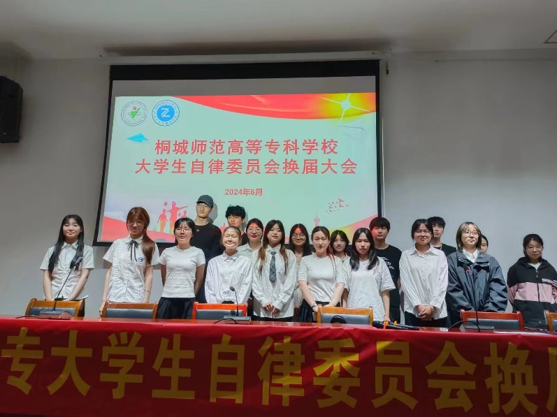 校自律委員會是學校學生自治的重要組織,為了確保校自律委員會的正常運作和持續發展,進一步完善學生隊伍建設,培養一批新的學生幹部,校自律委員會於6月6日晚在其昶樓報告廳開展2024屆換屆大會。