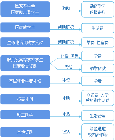 我省在高等教育本專科階段建立起國家獎學金、國家勵誌獎學金、國家助學金、國家助學貸款等多種形式有機結合的高校學生資助政策體係。(如遇國家、省政策調整,以新政策文件為準執行)