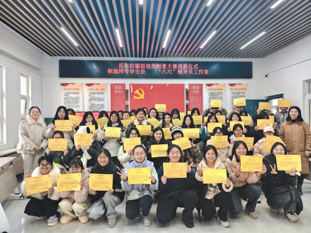 12月12日,“六尺”輔導員工作室組織獲獎學生在一站式學生社區舉行了的頒獎儀式。同學們紛紛表示,“反詐騙視頻拍攝活動中既活躍了校園氣氛,又讓关键词2學到了反詐知識還得到同學們和家長認可,真的很開心!”後續優秀視頻作品還將持續在學校宿舍區大屏展播,讓反詐知識學習成為學生日常進出宿舍的“必修課”,持續擴大反詐防騙成果,不斷提高學生的防範意識。