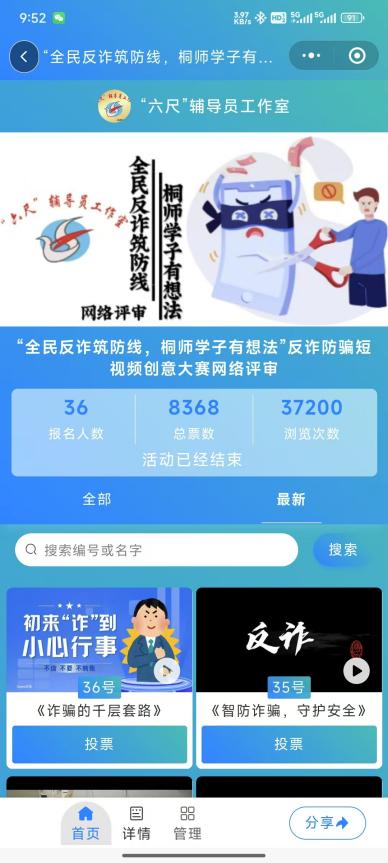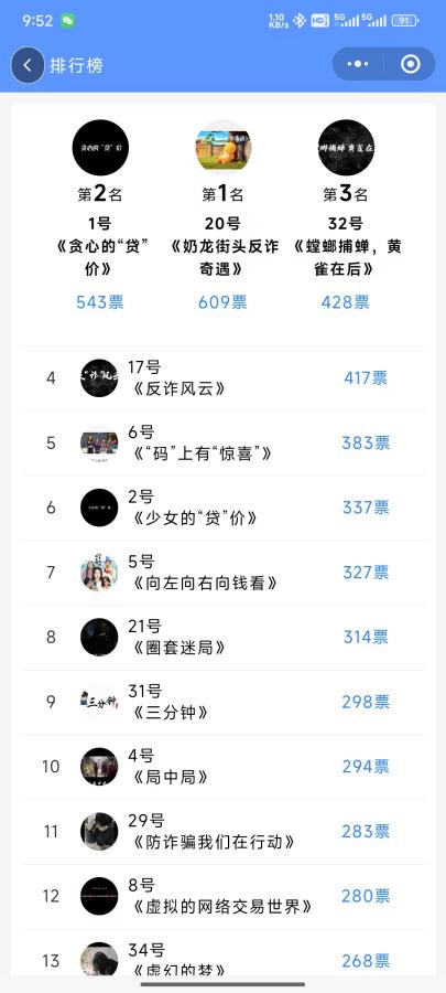 大賽采用網絡大眾投票與線下評委打分相結合的方式進行。網絡投票環節吸引了廣大師生和家長的關注與參與,36份參賽作品累計收獲高達8368票,瀏覽量突破36820人次,在全體師生中掀起來一股反詐防騙宣傳熱潮。線下評審組由學校相關部門負責人、輔導員代表和學生代表共9人組成,從內容主題、製作技術、表演效果和社會價值等四個方麵,全麵考量作品的反詐宣傳效果、創意構思、製作質量以及社會影響力等綜合表現,對所有作品進行評分。經過激烈角逐,大賽最終評選出了一等獎4名 、二等獎7名、三等獎11名和優秀獎若幹,並根據網絡投票數評出“網絡最佳人氣獎”10名。