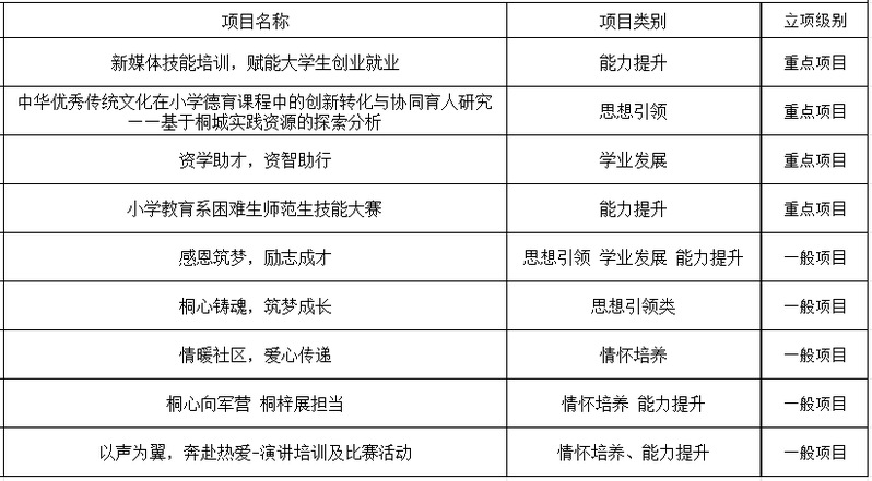 桐城師範高等專科學校2025年發展型資助項目立項公示