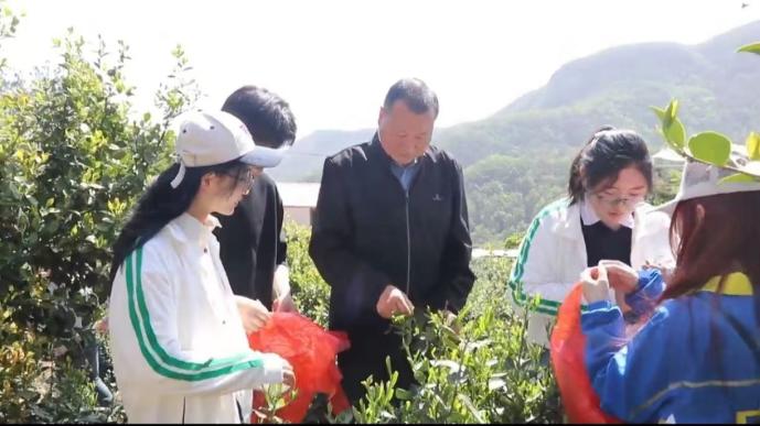 抵達山頂集體茶園,直播組同學迅速架好直播裝備,漫山蒼翠化作天然影棚。在茶園中,熊玉躍書記穿梭於茶壟間,手把手傳授“一芽一葉”采摘要訣,鏡頭內外同步開展勞動教學。蒼翠欲滴的生態茶園,穿梭其中的青春身影,積極采摘互相配合的默契歡笑和沾泥的褲腳,都通過直播鏡頭傳遞出去。兩小時的直播,師生家長看到了桐師學子的勞動風采、唐灣村鄉村振興的新風貌和小花茶的魅力,期間還促成了兩筆茶葉訂單,茶香順著互聯網春風飄出深山。