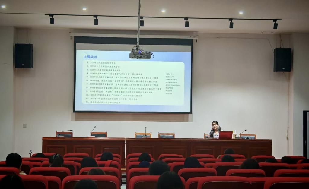 為幫助2024級新生明晰大學規劃、汲取成長經驗,5月8日下午,學前教育係在其昶樓學術報告廳舉辦“榜樣力量·築夢啟航”經驗分享會。活動特邀國家獎學金獲得者李夢茹、鄒楊兩位優秀學子擔任主講人。