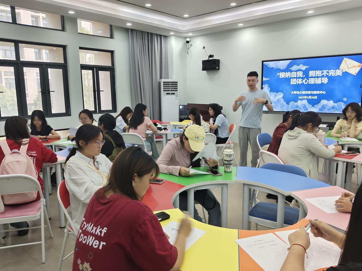 5月26日下午,大學生心理發展與服務中心在其昶樓二樓團體活動室成功舉辦了一場以“接納自我,擁抱不完美”為主題的團體心理輔導活動,該活動是心理健康月的係列活動之一,旨在幫助同學們學會接受自己的不完美,進而成就更加精彩的自我。此次活動通過團體組織的方式進行,共有24名同學積極參與。