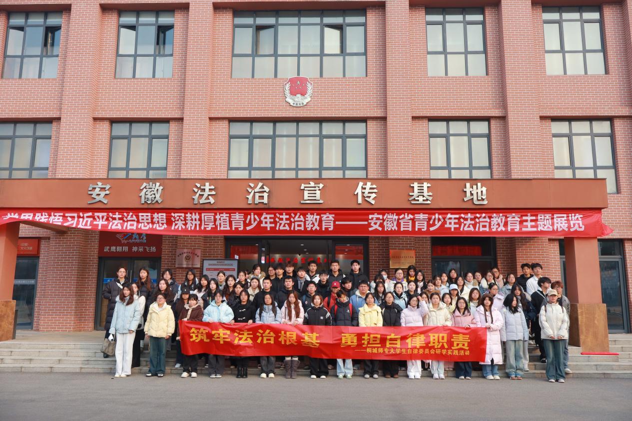 為深入學習宣傳貫徹習近平法治思想,全麵落實“八五”普法規劃要求,傳承紅色基因、厚植愛國情懷,12月17日,校大學生自律委員會赴合肥市開展“桐梓行——法治潤心 紅途鑄魂”主題實踐活動。本次活動通過走進安徽省法治宣傳教育基地與渡江戰役紀念館,讓成員在沉浸式學習中夯實法治信仰、凝聚紅色力量,切實強化守法自律意識,充分發揮學生組織“自我教育、自我管理、自我監督、自我服務”的“四自”作用。