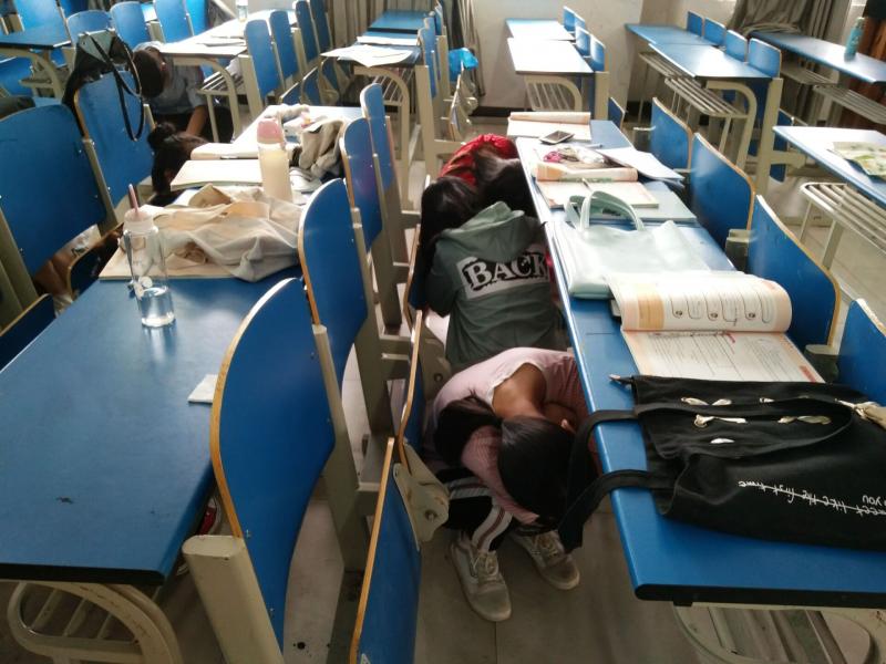 在演練之前兩天,係部先要求各位輔導員、班主任對各班級學生進行避震應急演練安全知識教育,5月10日上午8點,係團總支、學生會的同學們將紙質的避震應急演練安排表發放到在鯤池樓上課的各位授課教師手中,並要求教師現場帶領學生再次學習避震應急演練知識。