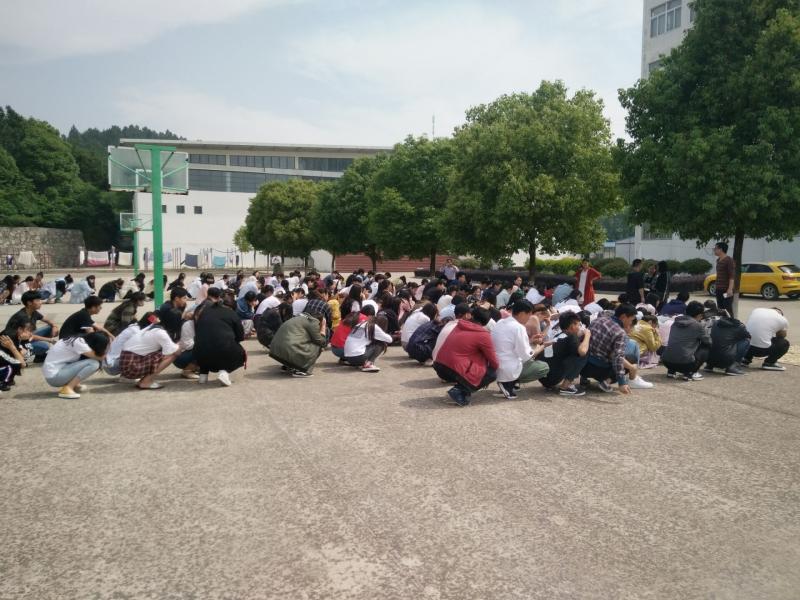 9點20分播放安全演練信號的語音提示,請各位師生提前做好準備,9點30分當預警哨聲吹響後,全體教師立即就位,組織學生避險,係團總支、學生會的工作人員協助老師們組織所有同學按規劃好的疏散線路下樓,有序、安全地緊急疏散到鯤池樓前的籃球場集中。到達指定地點用了不到三分鍾,無一人發生跌到摔傷事故。疏散演練井然有序、未發生任何問題,達到了預期的效果。