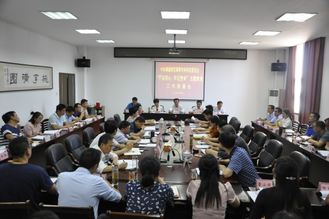 為深入貫徹落實黨的十九大精神和習近平總書記在“不忘初心、牢記使命”主題教育工作會議上的重要講話精神,按照中央、省委、市委主題教育工作安排,9月23日下午,校黨委在惜抱樓會議室召開“不忘初心、牢記使命”主題教育部署會。安慶市委主題教育第十巡回指導組組長陳亞玲、副組長周曉以及指導組成員楊瓊、朱承安、儲詒正出席會議。校領導班子、二級機構負責同誌、各支部委員參加會議。會議由校黨委委員、組織人事處處長王宏偉主持。