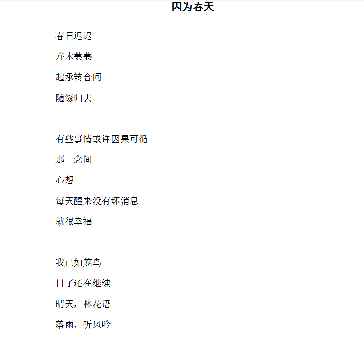 來自高專18藝術設計班趙文莉的詩歌作品《因為春天》