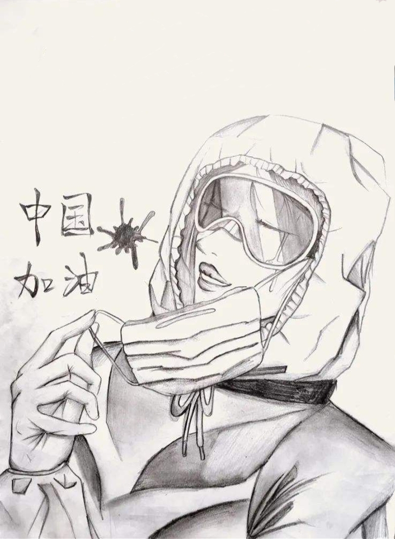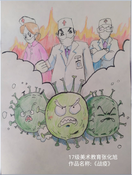 來自高專17美術教育班張化旭的美術作品《戰疫》