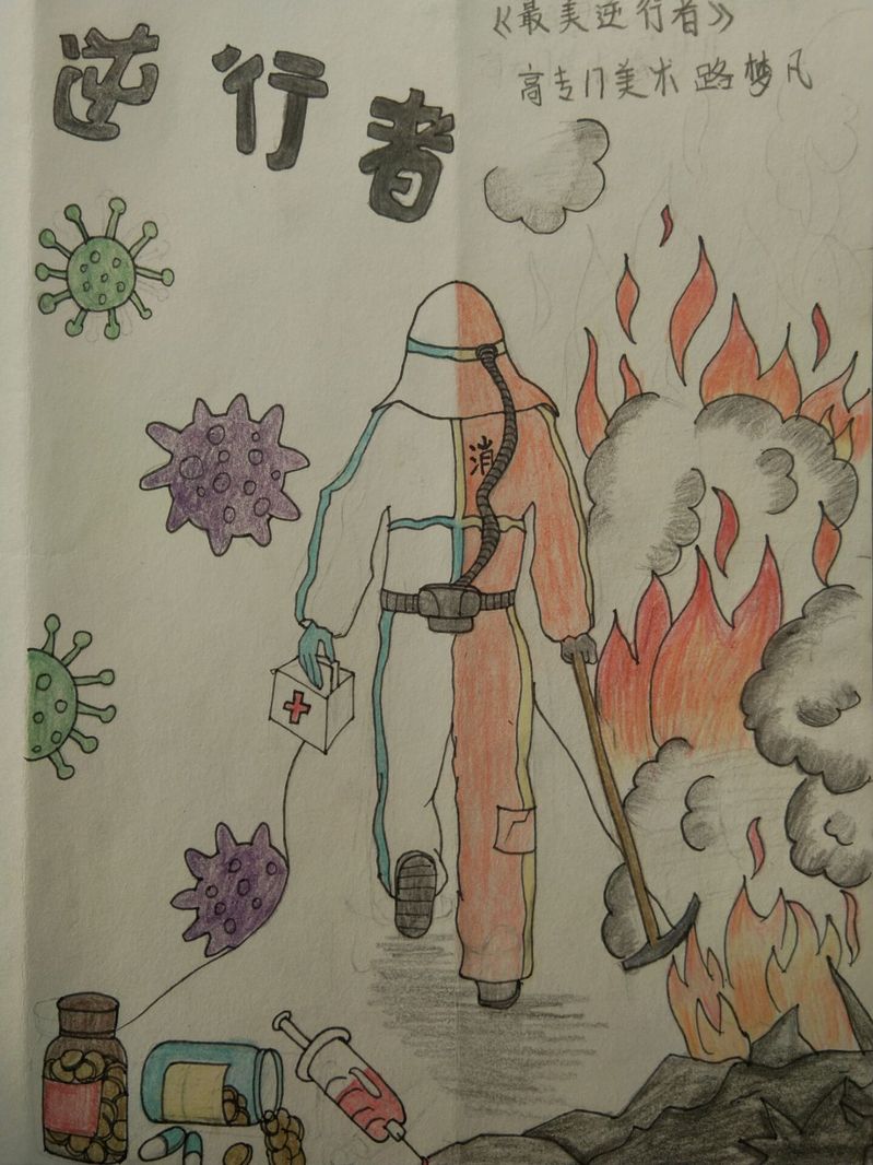 來自高專17美術教育班的路夢凡美術作品《最美逆行者》