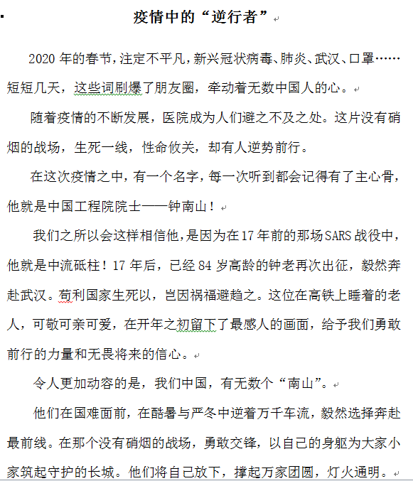 來自高專18音樂教育班唐詠婷的文章《疫情中的“逆行者”》
