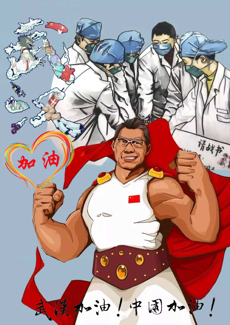 來自高專18美術教育班韓樂樂的作品《武漢加油!中國加油!》